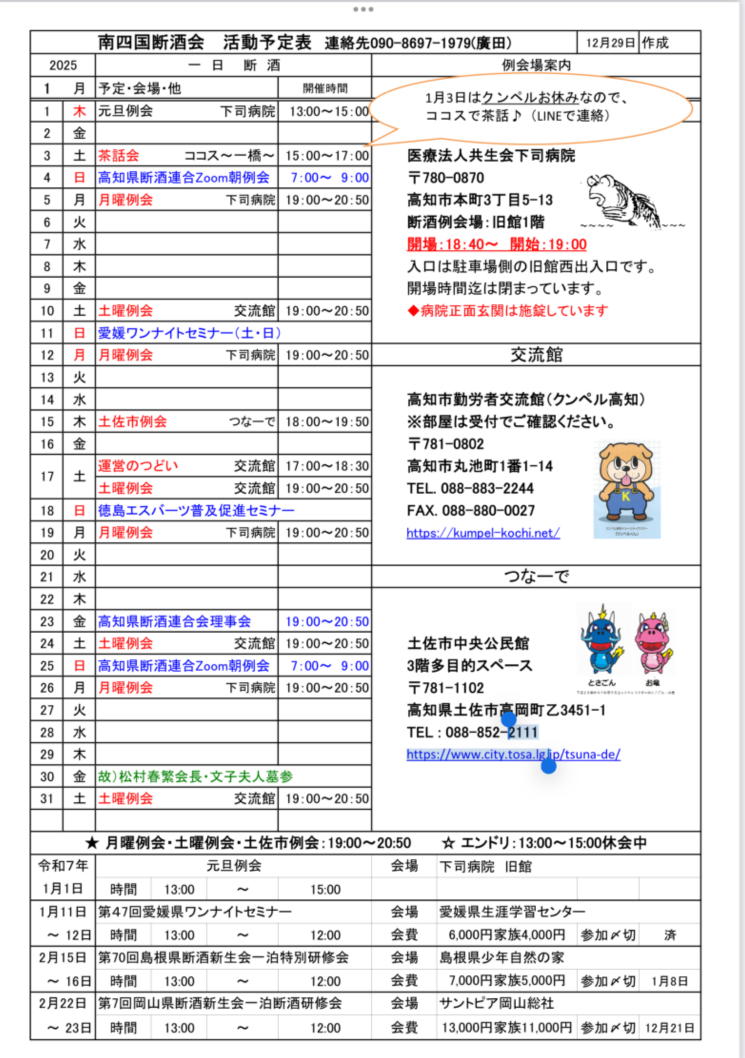 ※南四国断酒会活動予定表12月をUPしました。(2025.12.29)